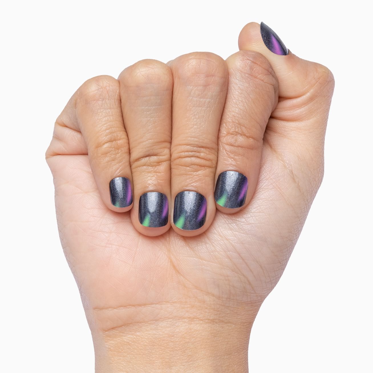 Winter Tale features a glossy pastel purple background with a dusting of white and medium-purple snowflakes. The showstopper is the iridescent blue/green glitter ombre that gives snow queen vibes. Love this manicure? Don't let it go! Use a layer of top coat to keep those frozen fractal moments spiraling for even longer.