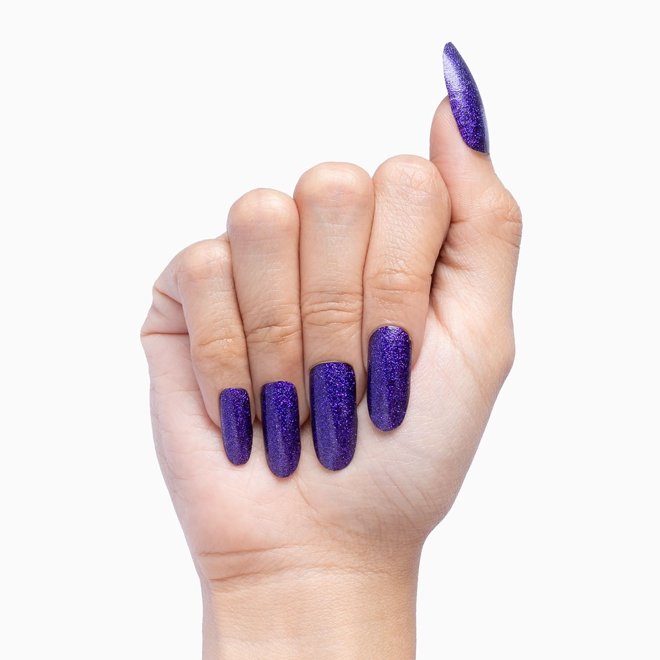 This look is 🔥with warm oranges, reds, and yellows with all sizes of gold, orange, and iridescent purple glitter to bring out your inner goddess, you foxy phoenix! Be prepared to be mesmerized by the magic on your fingertips in a manicure you can apply in minutes and gaze at longingly for weeks.