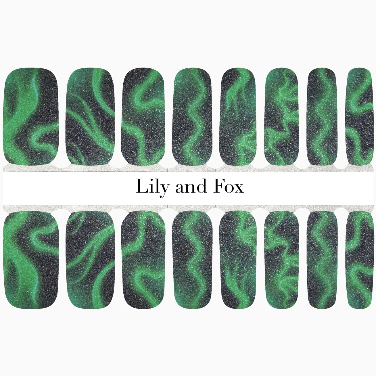 Make your manicure northern-lit with Aurora Dreams. This radiant nail wrap features pearlescent swirls of green and black. Want this aurora-ble look to last longer? Add a layer of top coat.