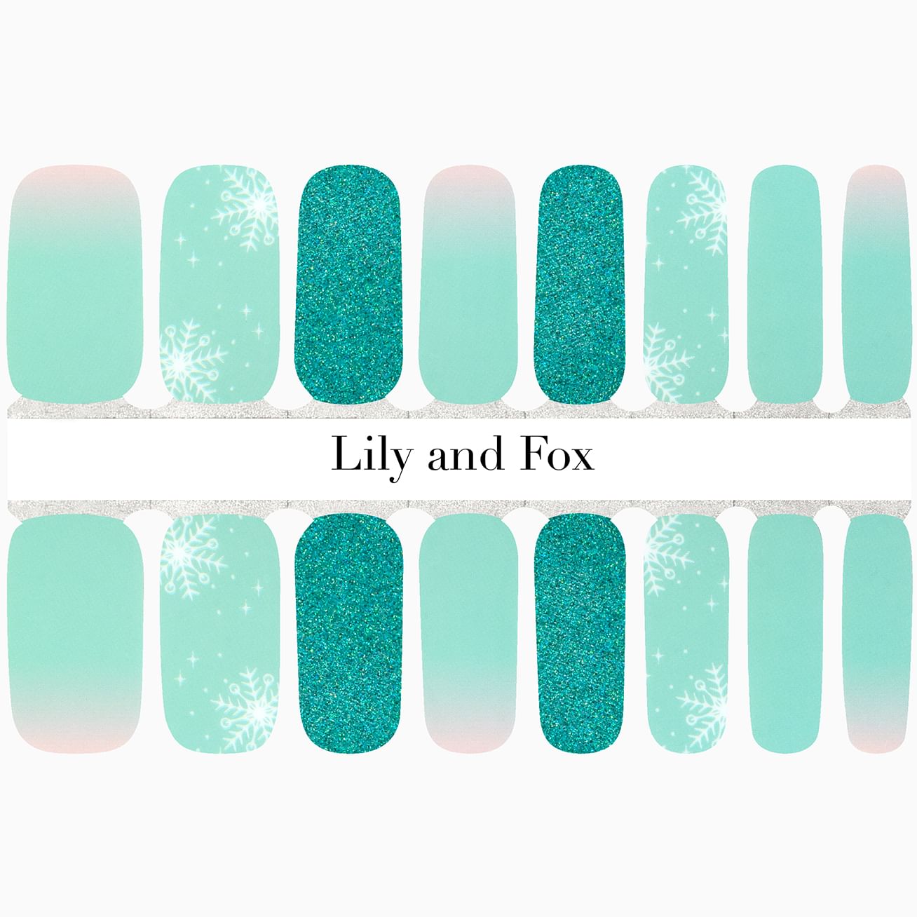 I wonder how you will style your manicure with so many mint-astic options! This nail wrap set includes a pale pink to mint-green ombre that transitions close to the cuticle (perfect for short and long nails), glossy white snowflakes, and a deeper green full glitter design. Top with a layer of top coat for extra-long wear.
