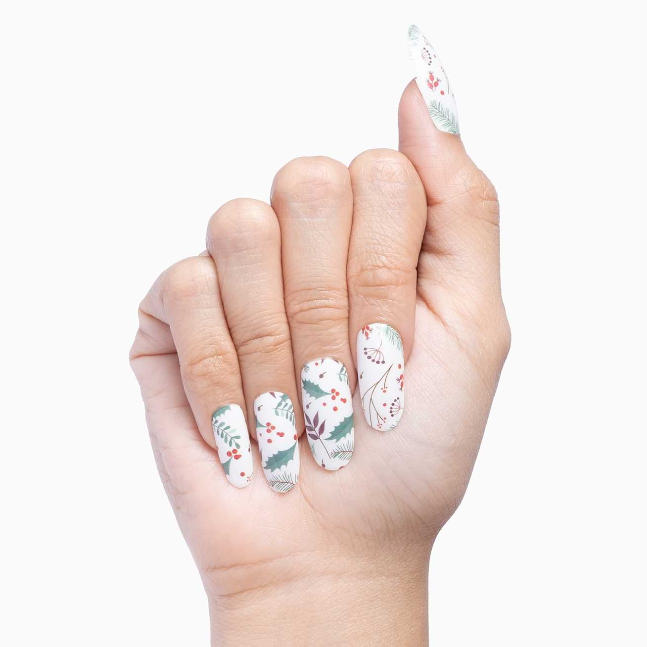 The name says it all: Sparkly Mistletoe. Wait, no it doesn't. This beautiful set features festive boughs of mistletoe against a white background, kissed with sparse red and green glitter for a manicure that is perfectly primed to dangle above your beloved's head. Make the mani moment last even longer by applying a top coat.