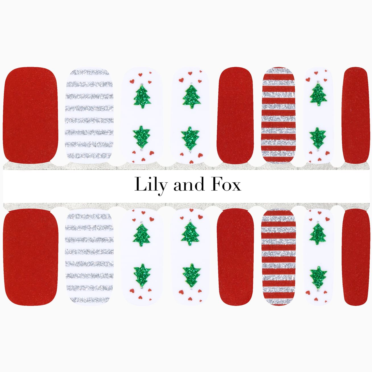 Let's be jolly! Rockin' Around the Christmas Tree features a mix of glittery stripes and Christmas tree, with glossy reds for a long-lasting manicure that is tough enough to deck the halls with boughs of holly. You will get a sentimental feeling when you hear all of the compliments on this festive holiday look.