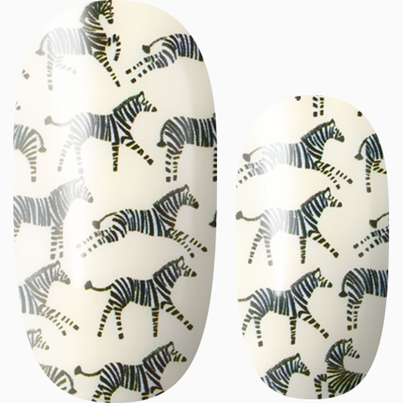 Why settle for zebra stripes when you can let your imagination and manicure run wild with a dazzle of zebras? Yes, we had to google, "what do you call a group of zebras?" and are delighted by this fun fact. This is a literal safari for your fingers with zebras on the move across a glossy, cream background. Keep this mani running longer by adding a layer of top coat.