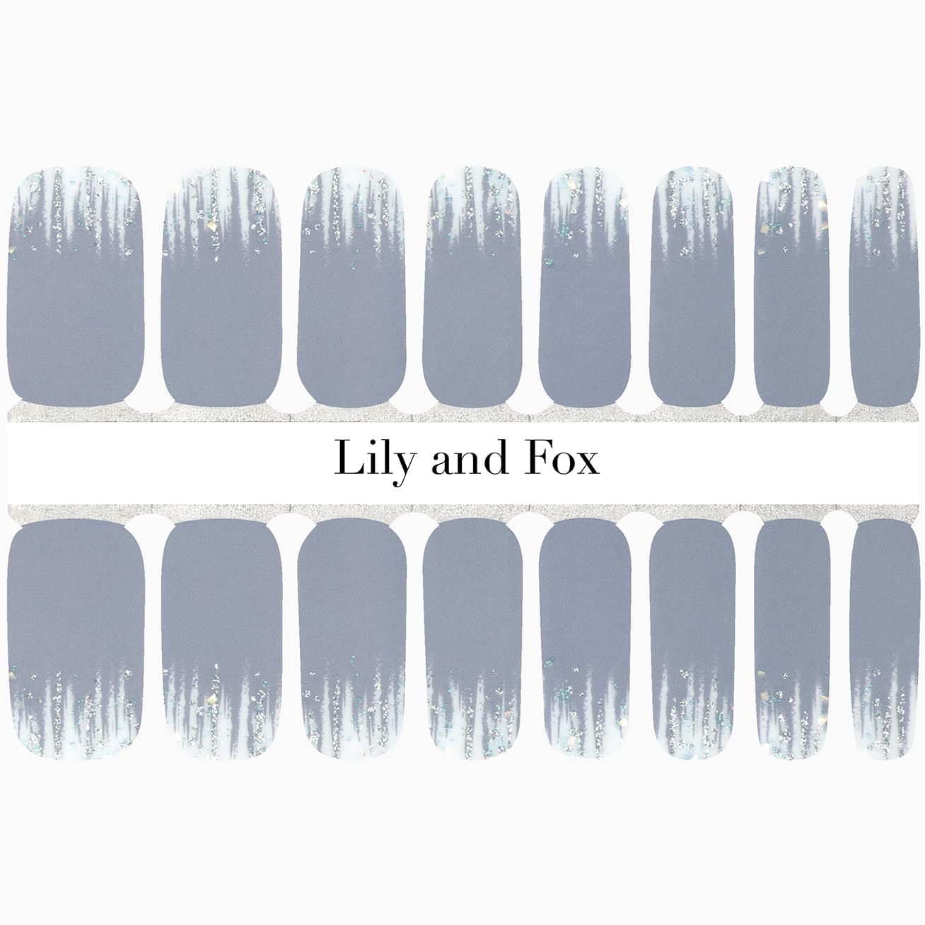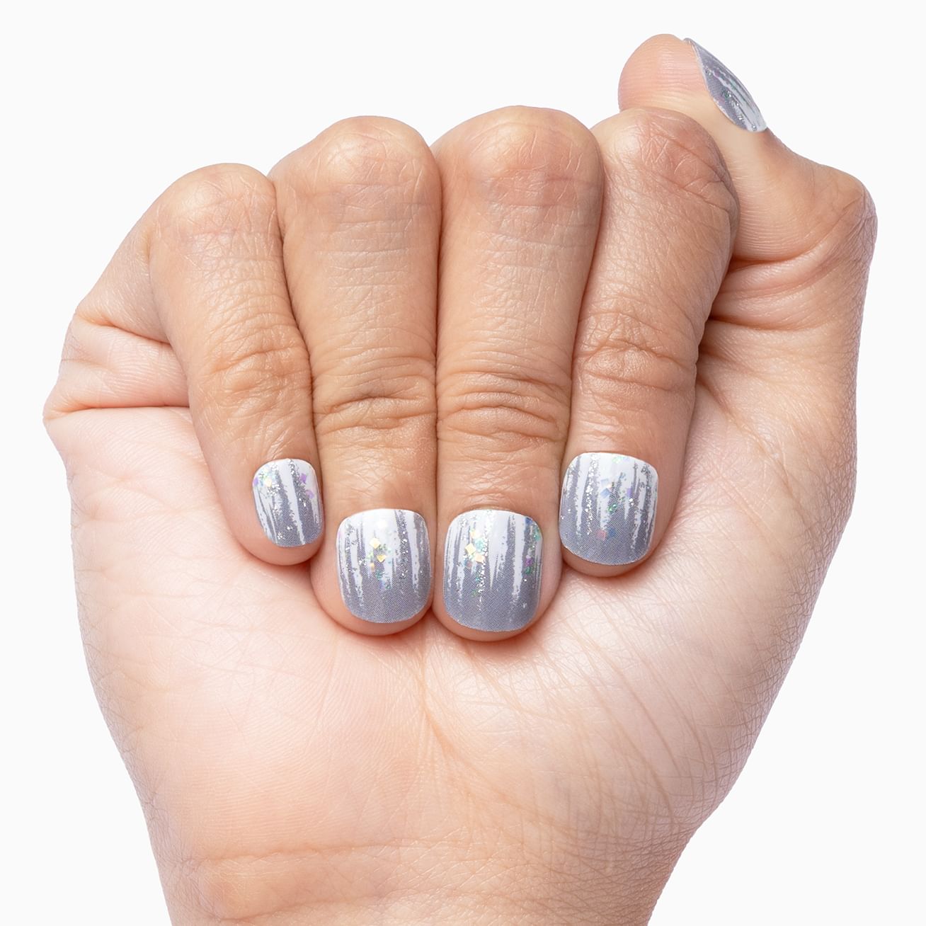 Winter Dreaming features white icicles with a hint of glitter along the cuticle set against a glossy blue-gray background. Keep this dreamy design going strong by adding a layer of top coat.